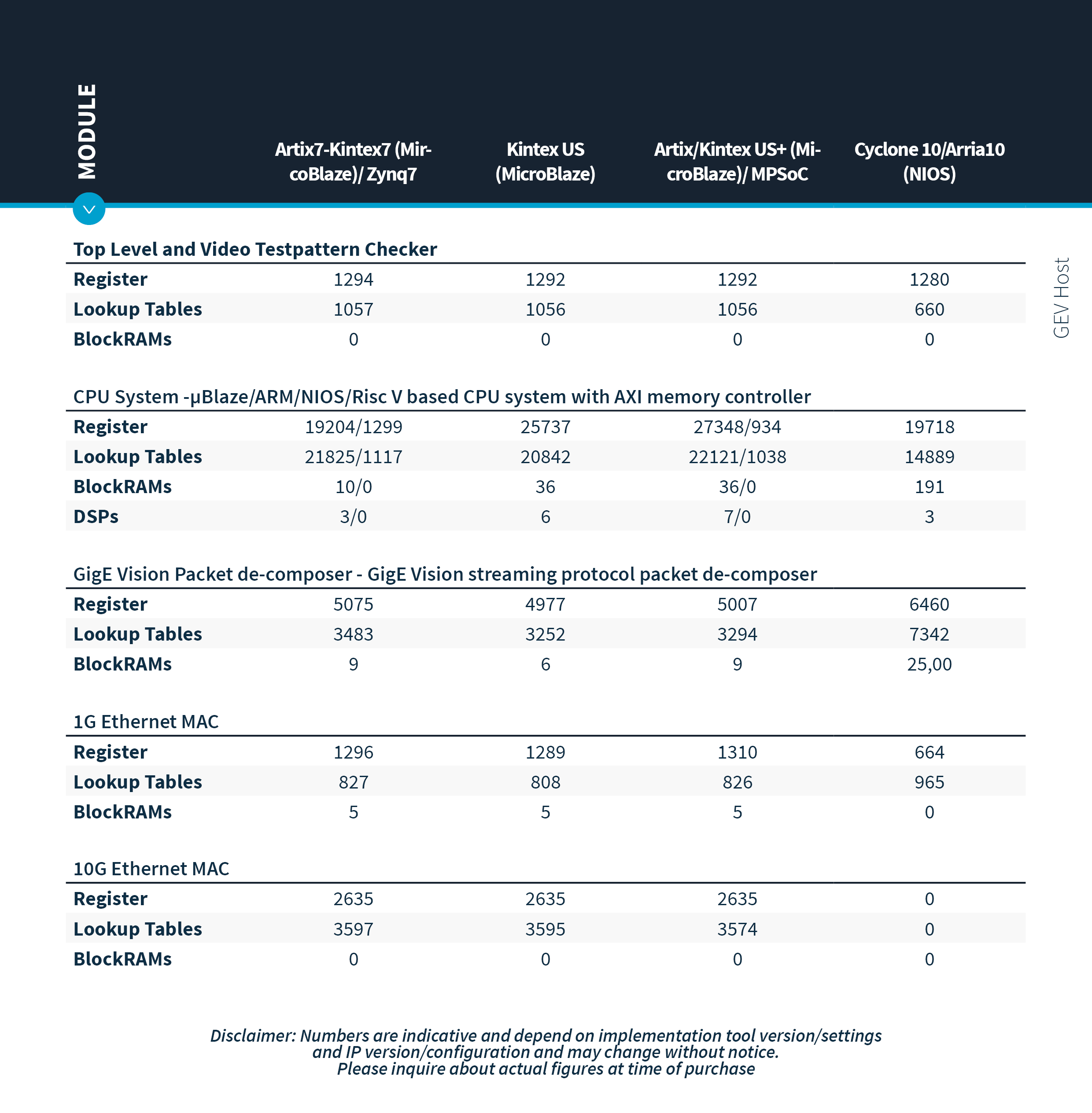 An FPGA integrated CPU design (MicroBlaze, NIOS, ARM, Risc V) is used for several non-time-critical network and configuration tasks. It also implements the GigE Vision Control Protocol (GVCP). This software is written in C and can be extended by the customer.